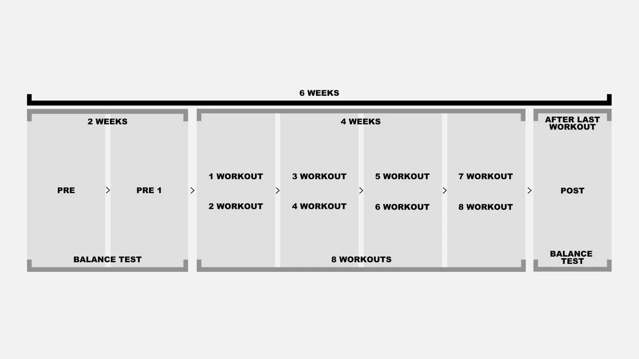 We measured their balance twice before (re-test) and after the four weeks using force plates and the functional "Y Balance Test," which basically looks like you are trying to slide a checker piece as far as you can with your foot while balancing on the other.